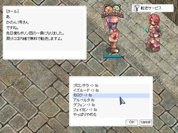 プロンテラに入ると最後の自動会話