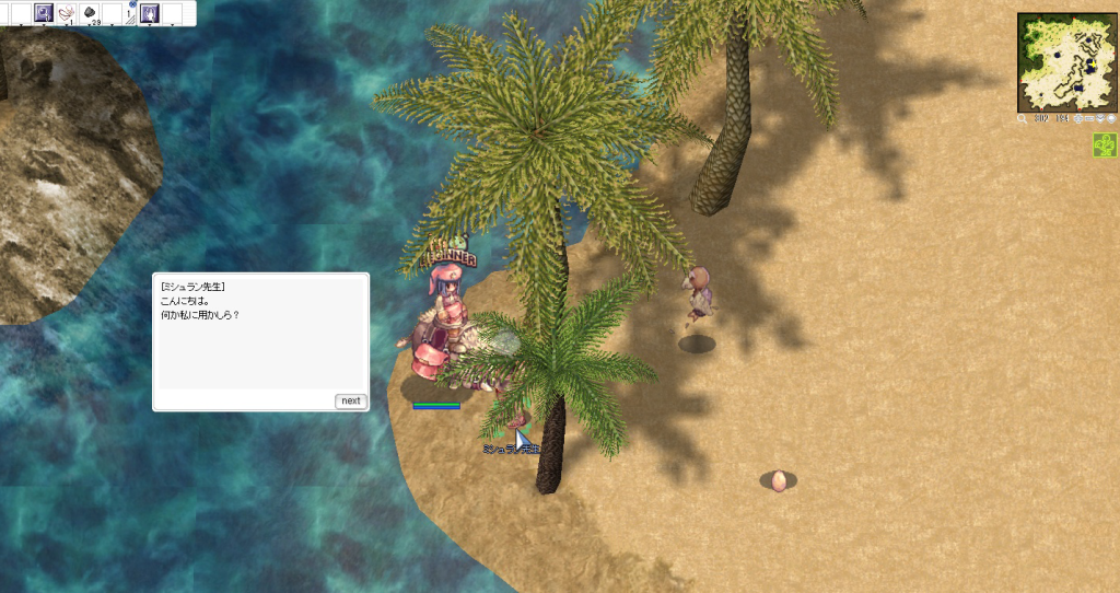 ポリン先生は北東の小島(350,330)にいる
