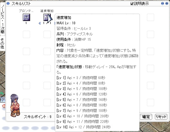 速度増加Lv1は移動速度が上がる。