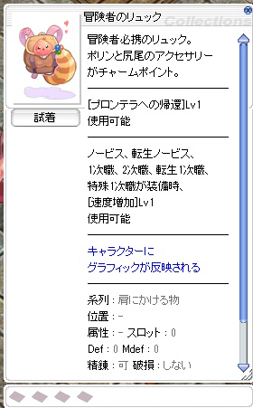装備の「冒険者のリュック」がもらえるよ